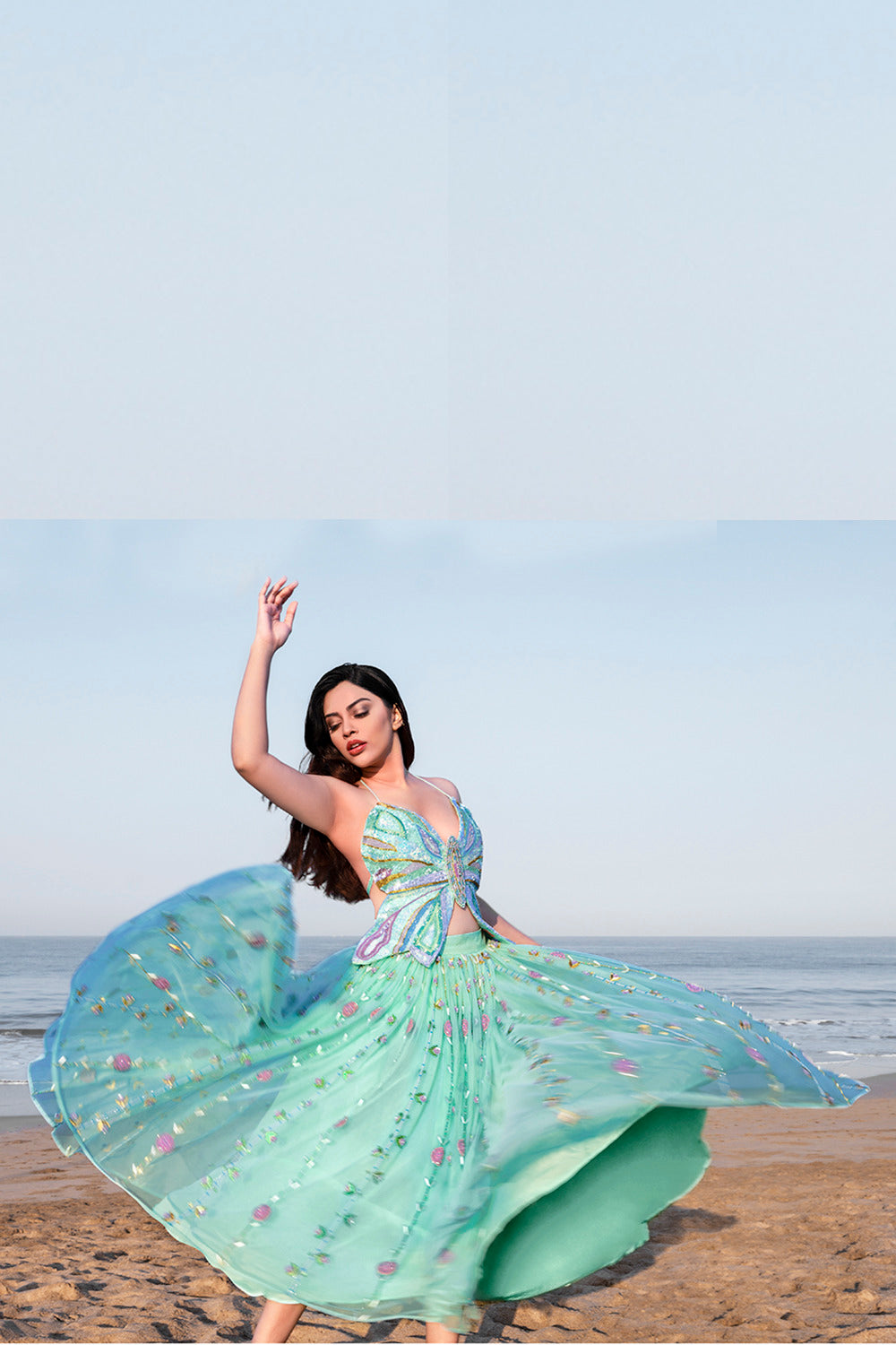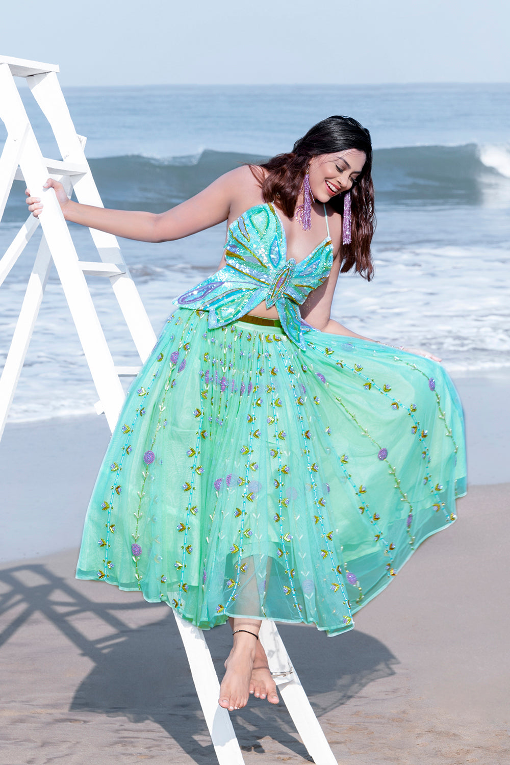 Introducing our enchanting Butterfly Silhouette Dress from the Pitara collection! This ankle-length skirt boasts a whimsical charm, adorned