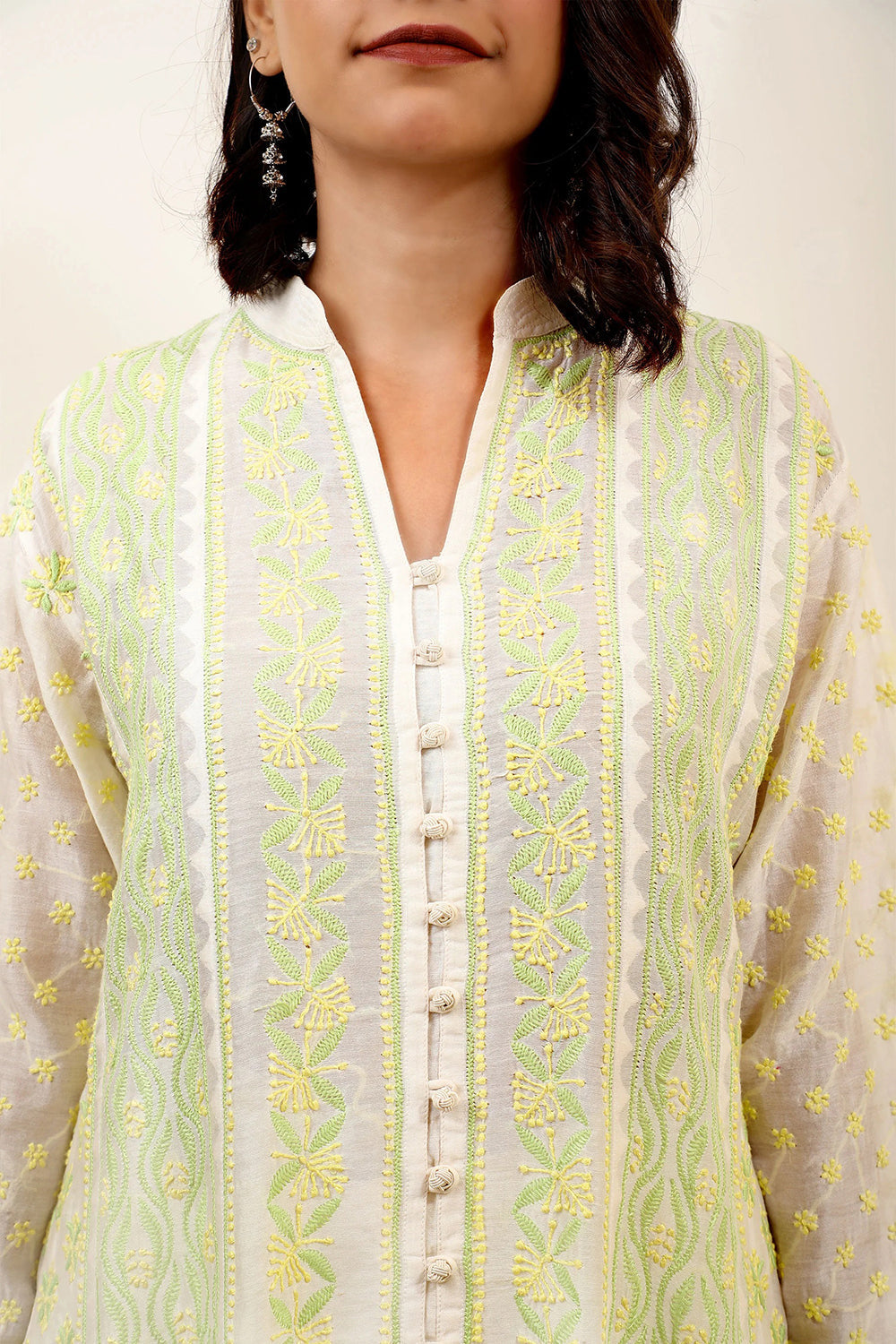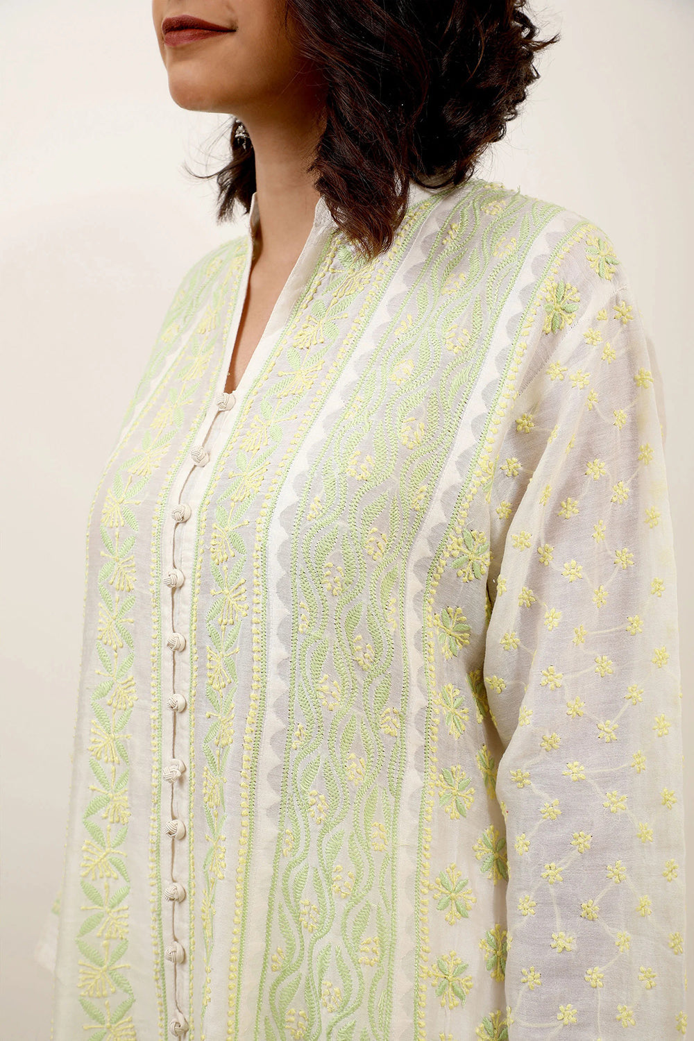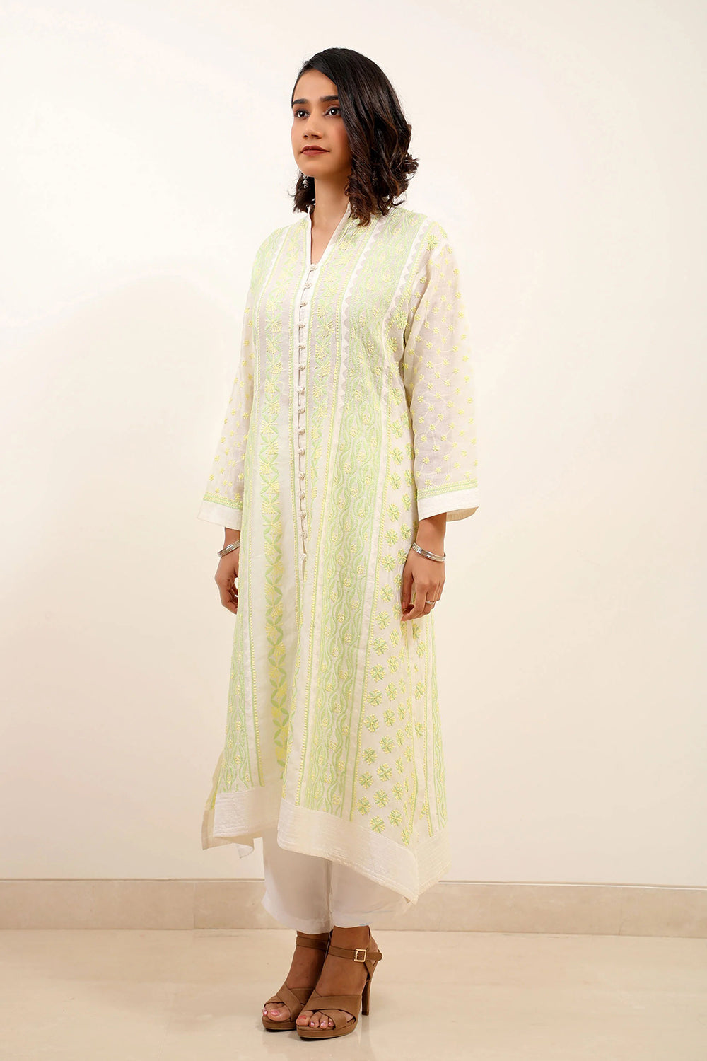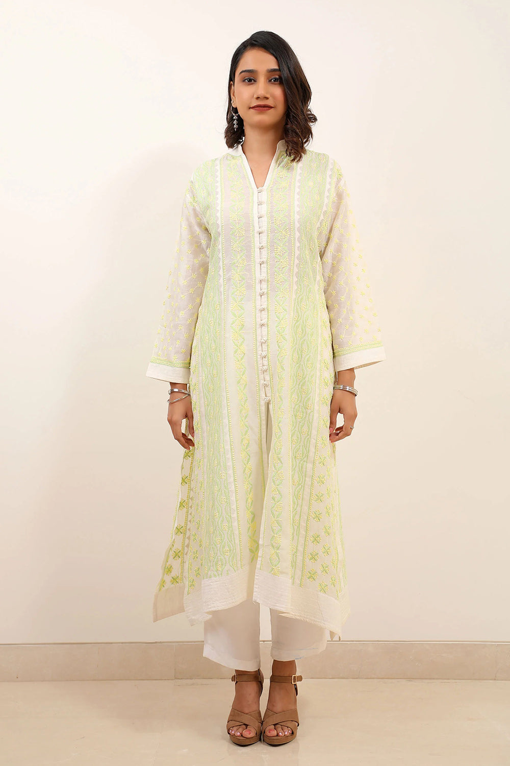 Stay in the limelight with our lime green and white Chikankari long kurta - a statement piece yet perfectly casual for all your day to night looks.